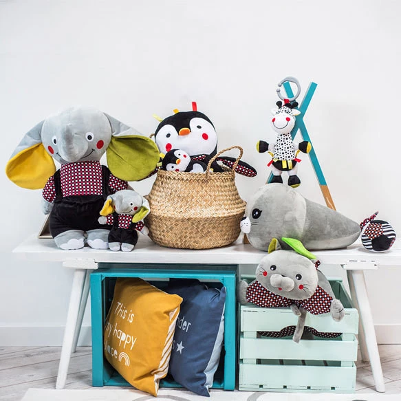 • rozwija umiejętności poznawcze poprzez stymulujące kształty, faktury i dźwięki