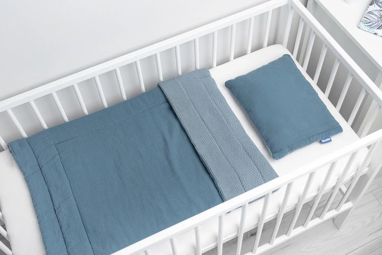 Komplet do łóżeczka to połączenie najwyższej jakości muślinu z jednej strony, z przędzą bawełnianą z drugiej. Dzięki takiemu połączeniu powstał elegancki zestaw, który łączy ze sobą klasę, jakość i praktyczność. Komplet sprawdzi się zarówno w ciepłe letnie dni jak i w trakcie chłodniejszej zimy. Składa się z dwustronnej płaskiej poduszki oraz kołderki z antyalergicznym wypełnieniem. Wymiary zostały dobrane tak, by idealnie sprawdzić się w łóżeczku, gondoli czy kołysce. Nawet zostać „ulubionym kocykiem”, który można wykorzystać w wózku spacerowym. Dzięki skandynawskiemu stylowi zestaw pasuje do każdego dziecięcego pokoiku.