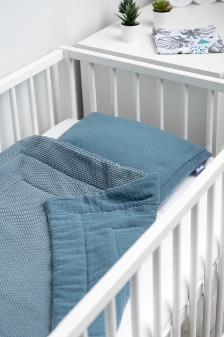 Sensillo Komplet Do Łóżeczka Dziergany Z Muśliną Niebieski