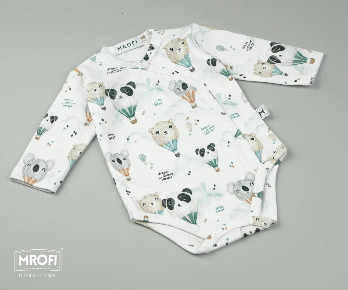 Body dziecięce z bawełny organicznej Mrofi to fajna propozycja jeśli chcecie zadbać o komfort i bezpieczeństwo Swojej Pociechy. Uniwersalne body niemowlęce kopertowe zapinane po całej długości na bezniklowe napy w balonowe misie pozwala w szybki sposób na rozbieranie maluszka i wspomaga zakładanie ubranka poprzez zapięcie w kroku ułatwiające ubieranie i utrzymanie pieluszki na swoim miejscu. Produkt z miłej w dotyku bawełny organicznej zapewnia wysoki komfort dziecku i dba o jego skórę nie powodując alergii.