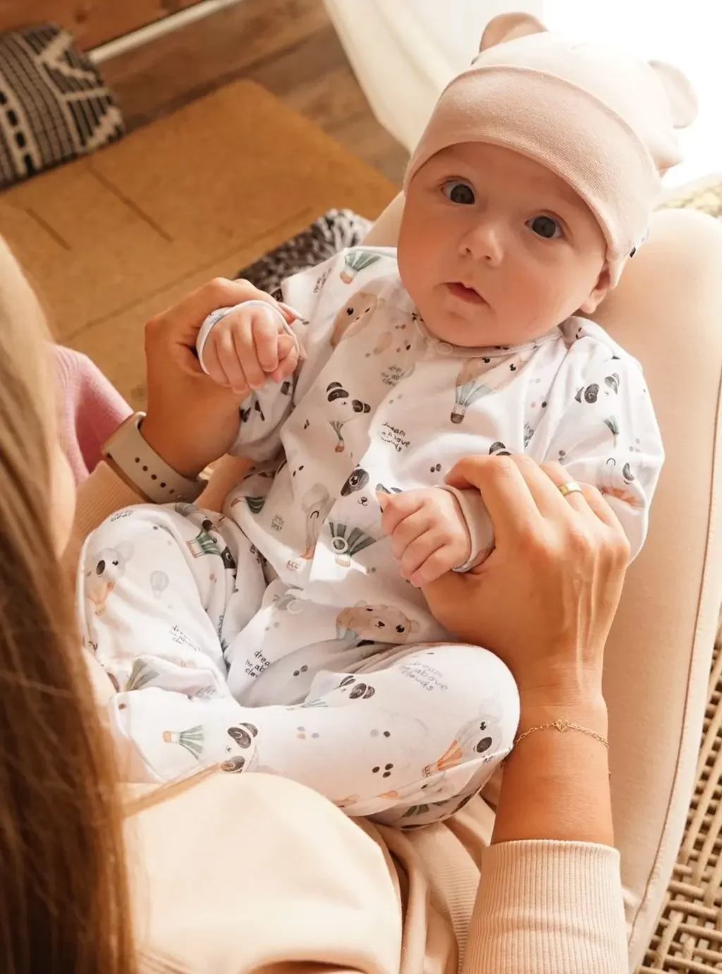 Dzięki czystej bawełnie bezpiecznej dla delikatnej skóry dziecka pajace dla niemowląt w misie z balonowe są bardzo przyjazne dziecku. Zarówno fajna kolorystyka jak i sama bawełna organiczna zapewnia komfortowe samopoczucie, a pajac rozpinany jest łatwy w noszeniu dzięki napom po całej długości aż do małych stópek co jest również wyjątkowo ważne jeśli chcemy szybko zmienić pieluszki dziecku. Jest to atut który na pewno ułatwi codzienną pielęgnację noworodka.