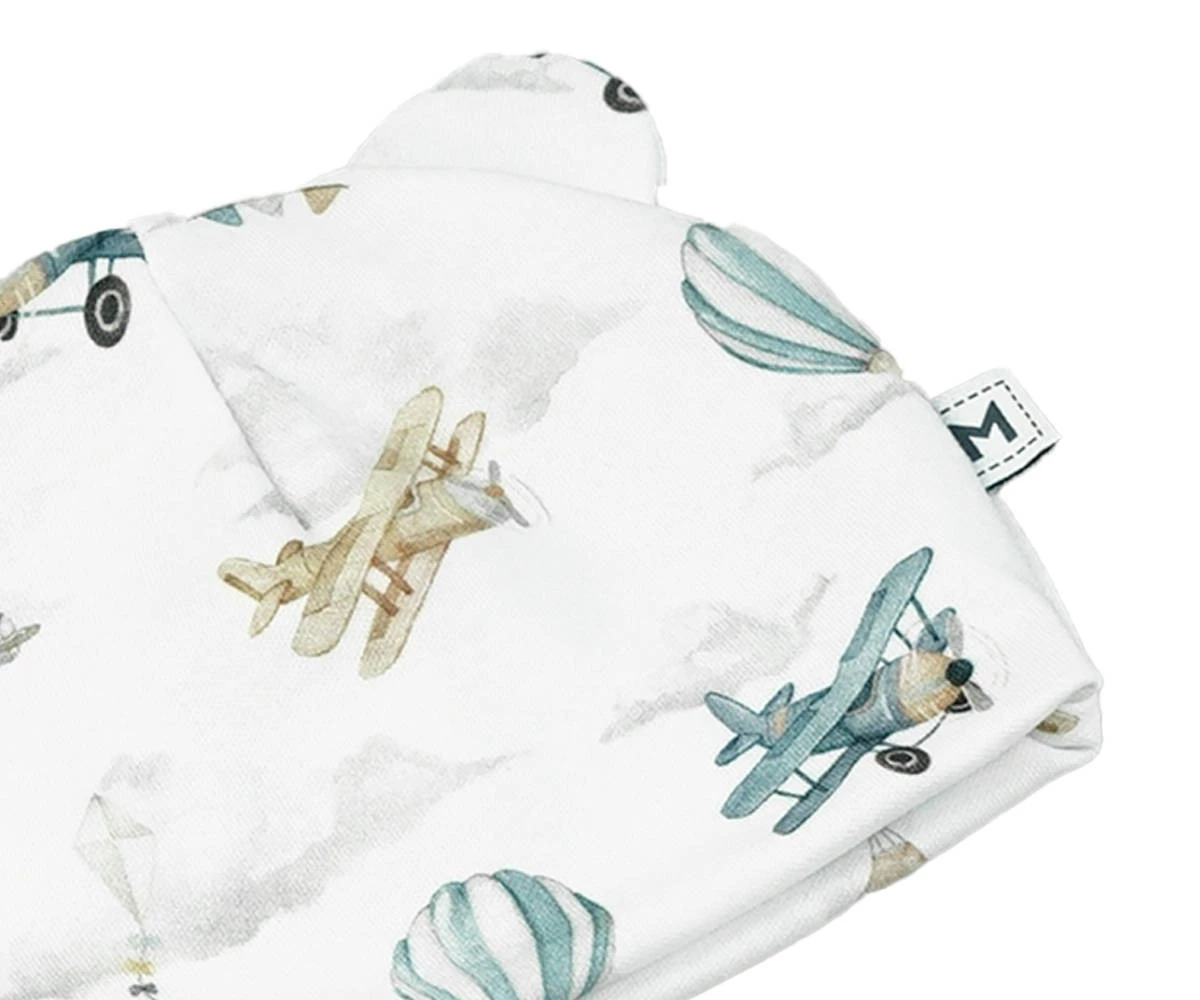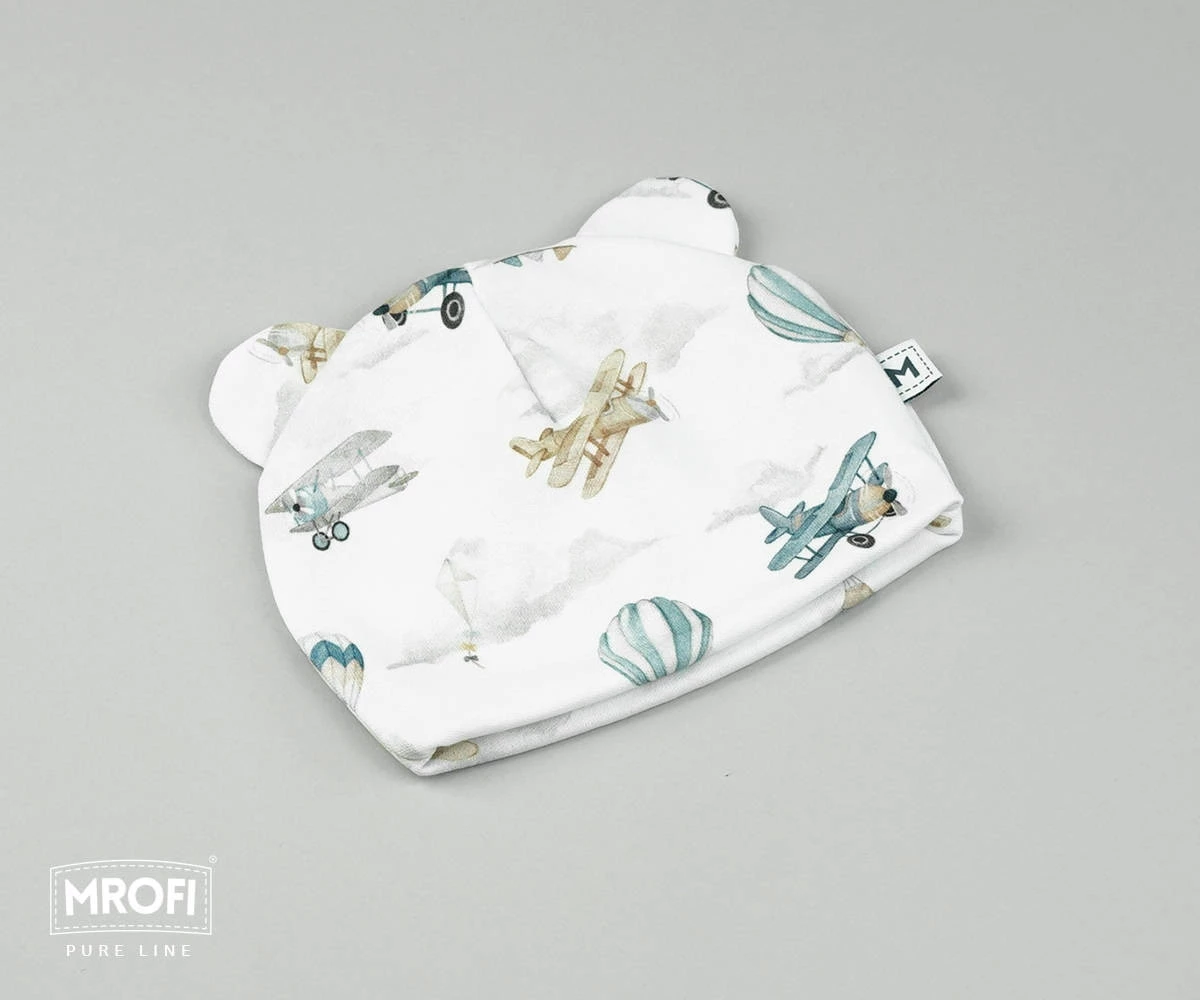 Idealny zestaw ubraniowy dla malucha nie może się obyć bez akcesoriów takich czapeczki niemowlęce które pozwalają skórze oddychać i są doskonałe dla wrażliwej skóry niemowląt. Przedstawiamy Państwu uroczy idealny zestaw z serii Vintage Planes a w nim czapeczkę niemowlęcą z uszkami, wykonaną z wysokiej jakości bawełny organicznej. Bawełniane ubranka stworzone przez markę Mrofi, z myślą o zapewnieniu maksymalnego komfortu i ochrony dla Waszych małych skarbów. Czapeczki idealnie otulają główkę i przylegają do delikatnej skóry niemowląt dzięki czemu masz pewność że regulują ciepło, pozwalają skórze oddychać zapewniając maluszkowi najwyższy komfort.