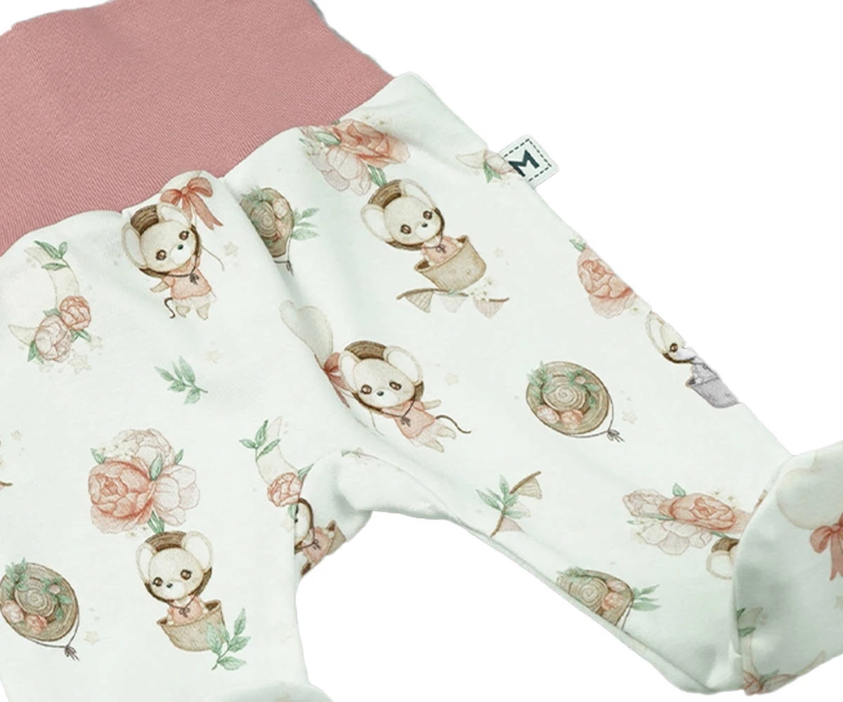 Dzięki czystej bawełnie bezpiecznej dla delikatnej skóry dziecka spodenki dla niemowląt w małe myszki są bardzo przyjazne dziecku. Zarówno fajna kolorystyka jak i sama bawełna organiczna zapewniają komfortowe samopoczucie, a same legginsy w myszki dbają o delikatny brzuszek dzięki bez uciskowemu ściągaczowi w pasie. Delikatne półśpiochy wykonane w Polsce marki Mrofi zapewniają dziecku bezpieczeństwo a rodzicom komfort użytkowania dzięki czystej bawełnie która nawet po wielokrotnym praniu zachowuje swój kształt.