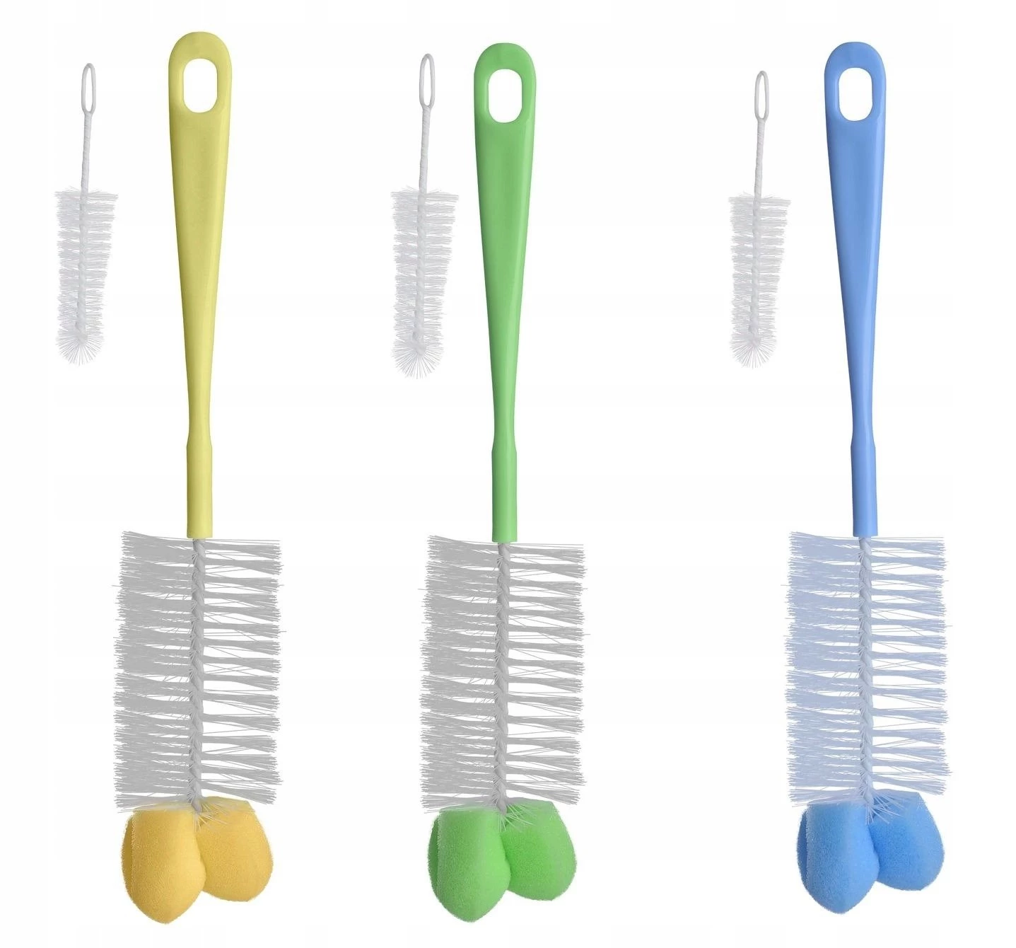 Szczotka do butelek i smoczków pomaga w ich dokładnym czyszczeniu. Odpowiednio wyprofilowane końcówki docierają do trudno dostępnych miejsc, a wygodne rączki zapewniają stabilny uchwyt. Szczotki wykonane są z trwałych i bezpiecznych materiałów, nie zawierających Bisfenolu A.