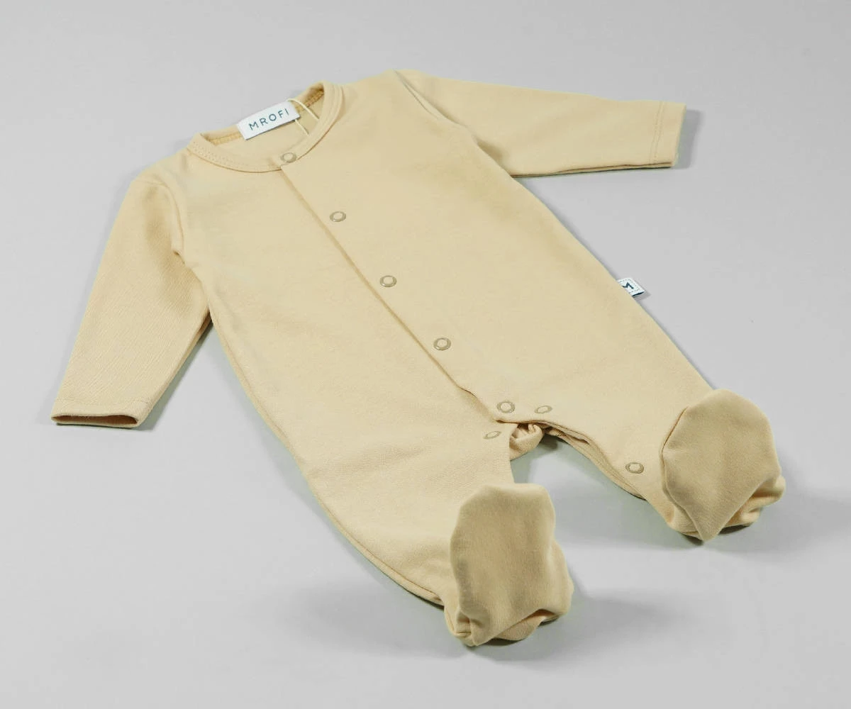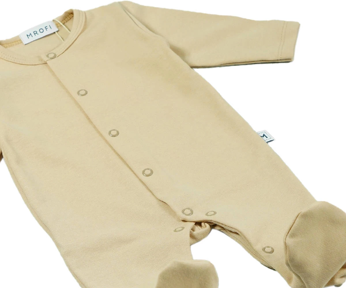 Pokochaj całą kolekcje z delikatnej bawełny organicznej od Mrofi, w kolorze beżu i zwróć Swoją uwagę również na inne produkty z tej serii jak doskonałe body kopertowe zapinane na antyalergiczne bezniklowe zatrzaski lub na śliczną beżową czapeczkę organic.
