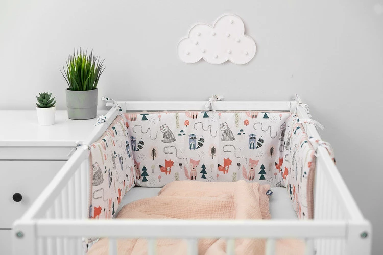 Cienki ochraniacz do łóżeczka od Sensillo to alternatywa dla grubych i ciężkich ochraniaczy powszechnie stosowanych w dziecięcych łóżeczkach. Cienkie wypełnienie z antyalergicznej owaty zapewnia odpowiednią izolację, ochroni dziecko przed urazami podczas poruszania się po łóżeczku, a przede wszystkim jest bezpieczne i minimalizuje ryzyko uduszenia się maluszka. Na niepowtarzalny wygląd ochraniacza składa się połączenie dwóch materiałów. Jedna strona wykonana została z miękkiej i przyjemnej w dotyku bawełny o strukturze wafla oraz druga z bawełny z kolorowym nadrukiem. Obie tkaniny posiadają certyfikat Oeko-Tex. Wszyte co ok. 30 cm tasiemki do mocowania gwarantują utrzymanie ochraniacza we właściwej pozycji.