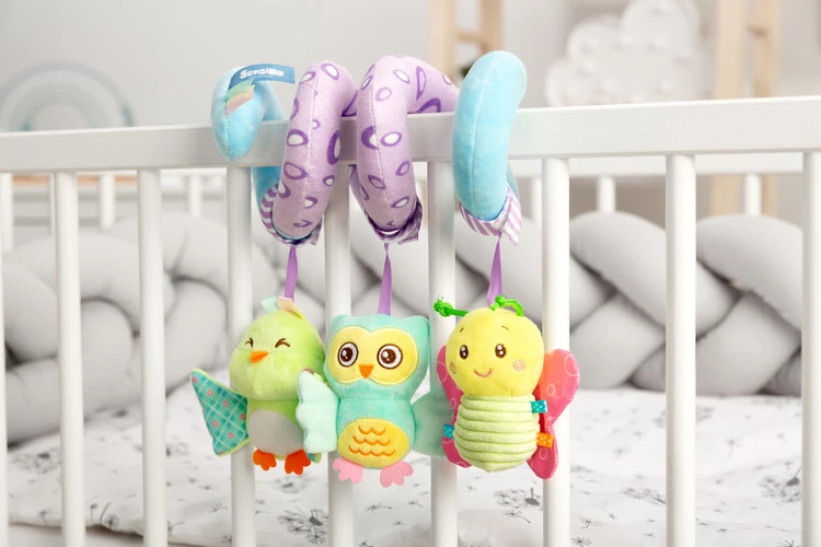 • Pluszowa zabawka edukacyjna przeznaczona do zawieszenia na łóżeczku, pałąku wózka lub fotelika