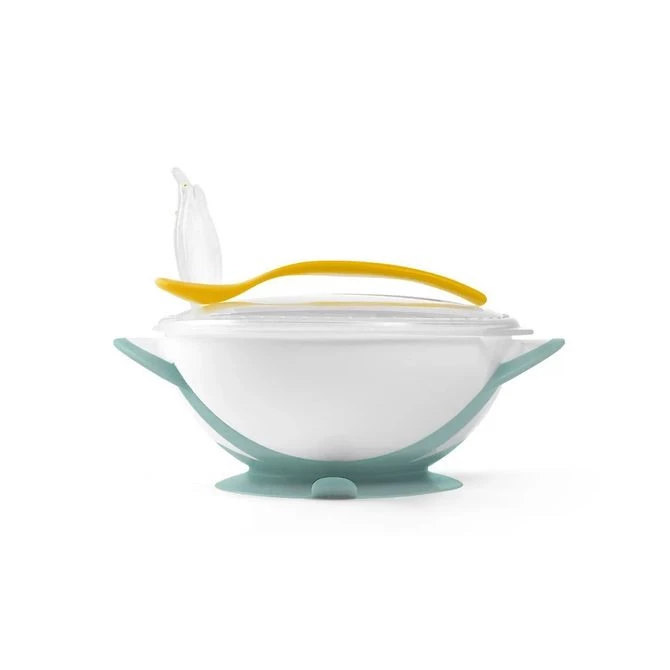 Silikonowa przyssawka zabezpiecza miseczkę przed przesuwaniem po stole, chroniąc jednocześnie pokarm przed rozlaniem.