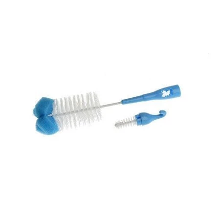 Zestaw specjalnie zaprojektowanych szczotek (duża i mała) do dokładnego mycia butelek i smoczków. Pozwalają na precyzyjne usuwanie zabrudzeń w trudno dostępnych miejscach. Większa szczotka wyposażona jest dodatkowo w gąbkę, ułatwiającą dokładniejsze umycie wnętrza butelki.
