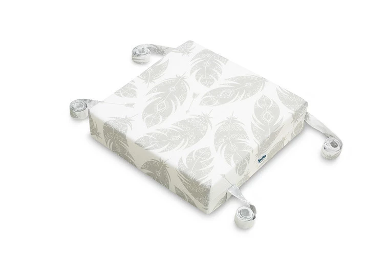 Siedzisko na krzesło dla dzieci to wygodna podwyższająca ‘‘poduszka”, która pomaga sięgnąć stołu. Jest to idealny wybór, gdy dziecko jest zbyt duże na krzesełko do karmienia a zbyt małe na standardowe krzesło stołowe. W jej wnętrzu znajduje się gruba (8 cm), odporna na zniekształcenia i zapewniająca wysoki komfort pianka poliuretanowa. Poszycie wykonane jest z 100% bawełny i posiada zamek błyskawiczny, który ułatwia jej ściągnięcie i wypranie. Uniwersalny rozmiar (32 cm x 32 cm x 8 cm) sprawia, że pasuje do standardowych krzeseł. Jest lekka i łatwo ją zabrać ze sobą wszędzie. Wszyte paski umożliwiają jej stabilne i bezpieczne zamocowanie do krzesła.