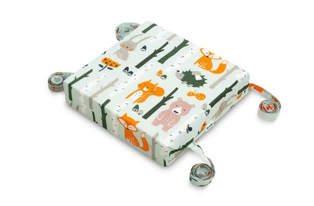 Siedzisko na krzesło dla dzieci to wygodna podwyższająca ‘‘poduszka”, która pomaga sięgnąć stołu. Jest to idealny wybór, gdy dziecko jest zbyt duże na krzesełko do karmienia a zbyt małe na standardowe krzesło stołowe. W jej wnętrzu znajduje się gruba (8 cm), odporna na zniekształcenia i zapewniająca wysoki komfort pianka poliuretanowa. Poszycie wykonane jest z 100% bawełny i posiada zamek błyskawiczny, który ułatwia jej ściągnięcie i wypranie. Uniwersalny rozmiar (32 cm x 32 cm x 8 cm) sprawia, że pasuje do standardowych krzeseł. Jest lekka i łatwo ją zabrać ze sobą wszędzie. Wszyte paski umożliwiają jej stabilne i bezpieczne zamocowanie do krzesła.