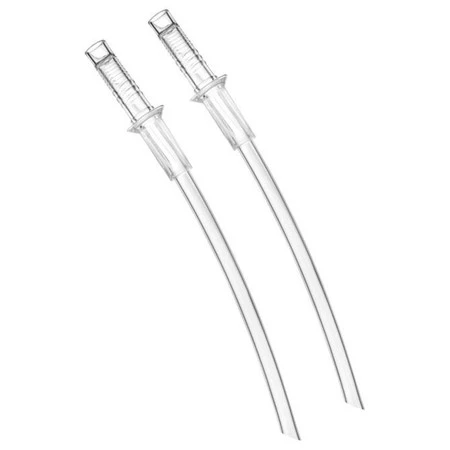 Zestaw 2 wymiennych silikonowych słomek do bidonów „akuku” o numerze katalogowym A0203 i A0204.