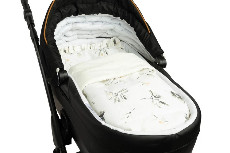 Sensillo Komplet Do Wózka Velvet Z Falbanką Oliwka Kremowy
