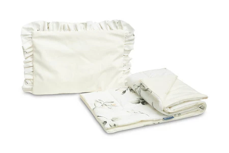 Komplet do wózka velvet z falbanką to atrakcyjna pozycja w gamie produktów Sensillo. W skład kompletu wchodzi śliczna poduszka falbanką oraz kołderka z delikatnym wypełnieniem. Dwustronny komplet jest wykonany z wysokiej jakości materiałów – kolorowej bawełny oraz bardzo przyjemnej tkaniny velvet, która utuli każdego bobasa. Komplet idealnie sprawdza się w wózku, łóżeczku, kołysce czy jako mata dla maluszka. Sama poduszka może służyć jako przytulanka.