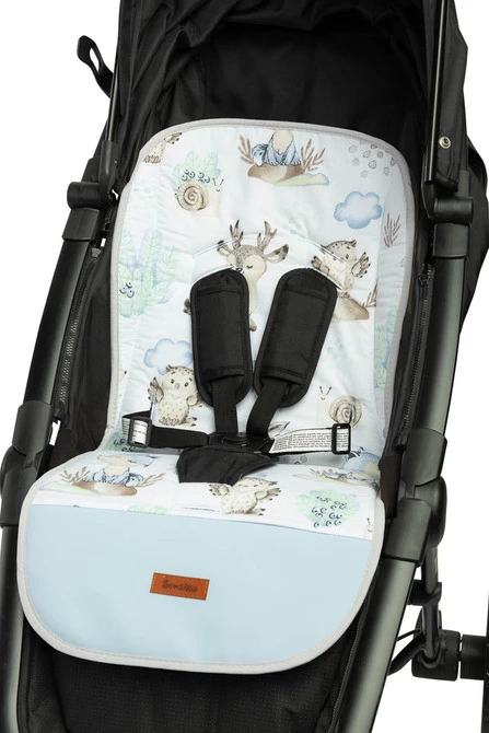 Dzięki uniwersalnej wkładce do wózka z wodoodpornym podnóżkiem, każdy może zmienić wygląd swojego wózka spacerowego. Wkładka pomaga utrzymać wnętrze wózka w czystości oraz podnosi komfort podróżowania. Dodatkowo posiada otwory na pasy bezpieczeństwa oraz wstążkę, do której przywiązać można poduszkę do kompletu