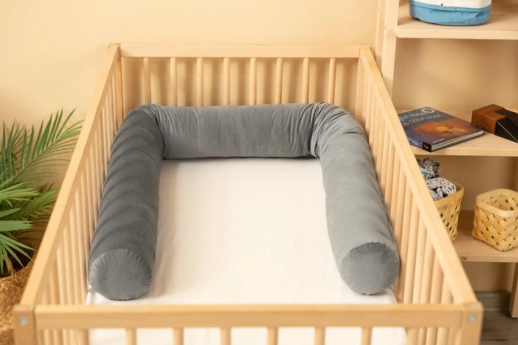 Ochraniacz do łóżeczka w kształcie wałka pomaga dbać o bezpieczeństwo i komfortowy sen dzieci. Zabezpiecza przed uderzeniem w szczebelki oraz izoluje przed chłodem ściany. Kładąc go pod drzwiami lub oknem można wykorzystać go jako ochronę przed przeciągami. Dzięki uniwersalnemu rozmiarowi, nadaje się do użytku przez dzieci w każdym wieku, jak i dorosłych. Ochraniacz jest miękki i elastyczny, a materiał i wypełnienie nie tracą swoich właściwości pomimo wielokrotnego prania. Wypełnienie stanowi antyalergiczna kulka silikonowa.