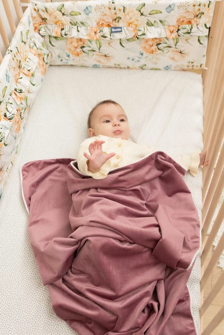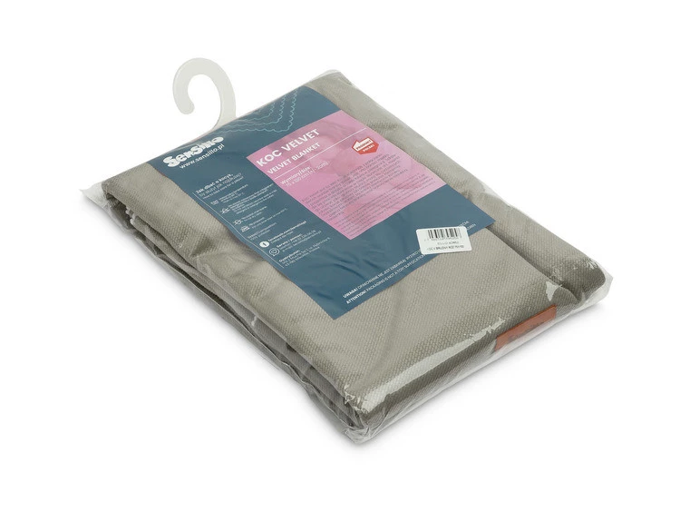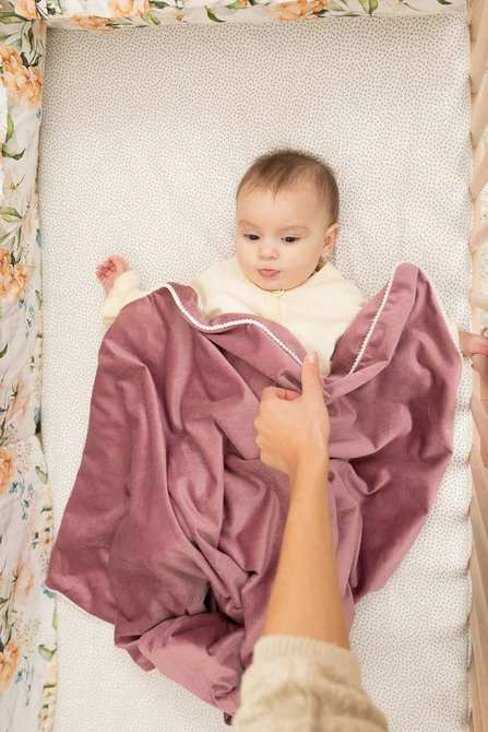 Koc Velvet jest to lekki kocyk wykonany z połączenia dwóch warstw tkaniny Velvet. Jest ona bardzo miękka i przyjemna w dotyku, a także łatwa w pielęgnacji. Sprawdzi się podczas spacerów w ciepłe słoneczne dni, można go używać jako: grubszy otulacz, matę do codziennych zabaw, kocyk plażowy lub osłonę podczas karmienia. Dodatkowym atutem są walory estetyczne kocyka — piękna tekstura tkaniny oraz wykończenie ozdobną tasiemką.