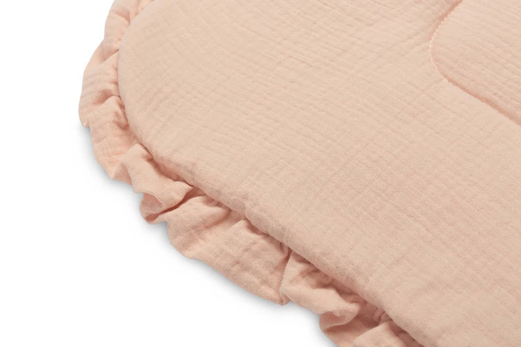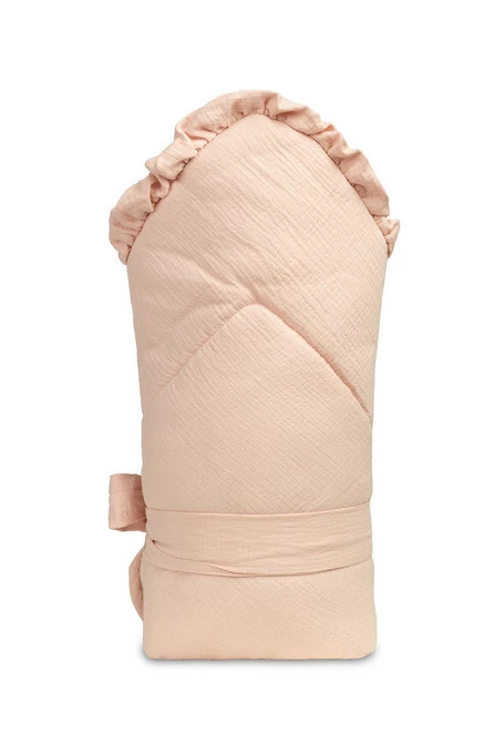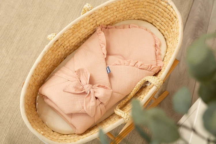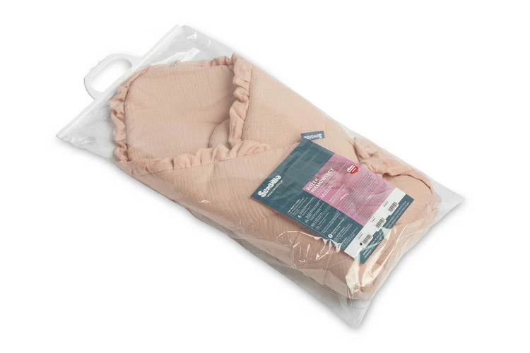 Dwustronny rożek niemowlęcy został stworzony z myślą o noworodkach i niemowlętach. Zapięcie na rzep umożliwia wygodne trzymanie dziecka podczas karmienia i usypiania. Po rozłożeniu, rożek może być z powodzeniem stosowany jako kołderka do łóżeczka czy wózka dziecięcego. Może także służyć jako mata do zabawy. Wykonany został z bawełny 100%. Z strony zewnętrznej i wewnętrznej posiada przyjemny w dotyku muślin. Wypełnienie rożka to włóknina puszysta silikonowa.