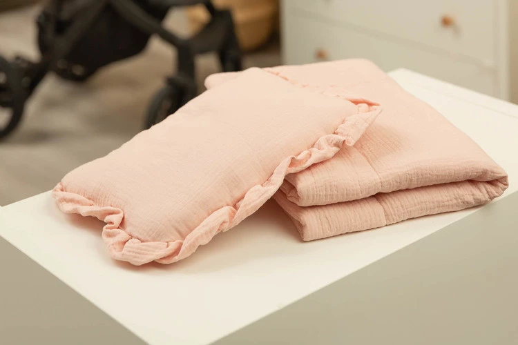 W skład kompletu wchodzi poduszka i kocyk wykonane z przyjemnego w dotyku muślinu. Komplet idealnie sprawdza się w wózku, łóżeczku czy jako miękka mata dla Maluszka. Sama poduszka może służyć jako przytulanka. Zestaw został wykonany z dwóch materiałów – strona wewnętrzna to 100% bawełna, a warstwa zewnętrzna to miękki muślin.