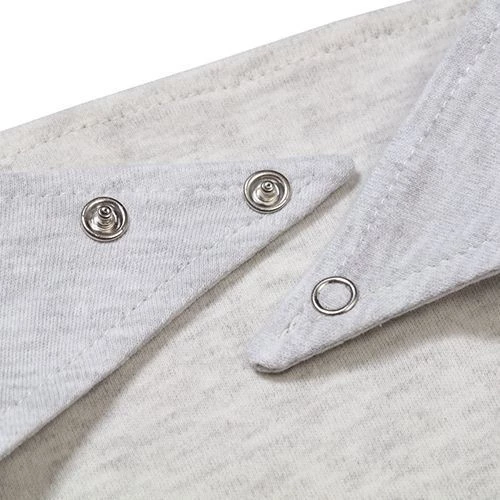 Śliniak apaszka to dwustronna chustka. Jej przód ma wielobarwne nadruki, a tył jest w uniwersalnym kolorze – szary melanż. Używając nap, w prosty sposób obracasz śliniak na drugą stronę.