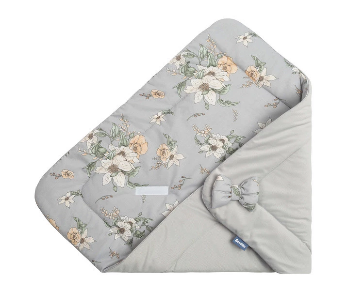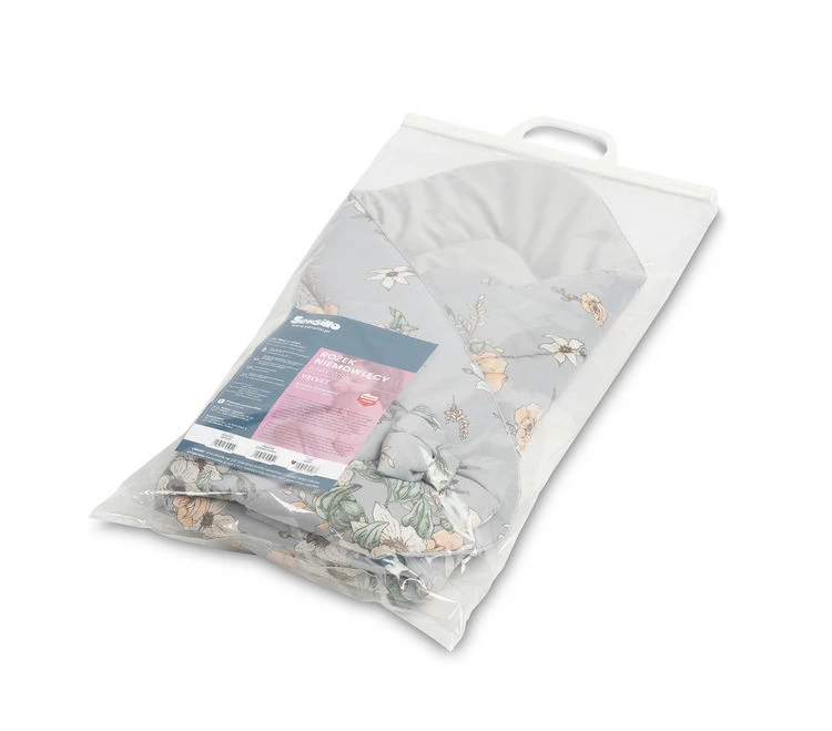 Dwustronny rożek niemowlęcy Velvet został stworzony z myślą o noworodkach i niemowlętach. Zapięcie na rzep umożliwia wygodne trzymanie dziecka podczas karmienia i usypiania. Po rozłożeniu, rożek może być z powodzeniem stosowany jako kołderka do łóżeczka czy wózka dziecięcego. Może także służyć jako mata do zabawy. Wykonany został z bawełny 100% oraz miękkiego delikatnego pikowanego tkaniny velvet. Wypełnienie rożka to antyalergiczna włóknina puszysta silikonowa. Wysoką jakość wykonania podkreśla estetyczna