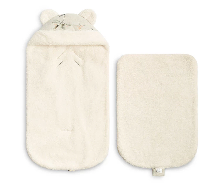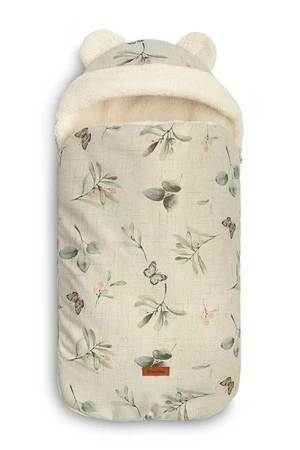 Śpiworek do fotelika oraz wózka głębokiego wykonany został z myślą o najmniejszych dzieciach. Doszyte uszka w kapturku oraz delikatny wzór stanowią o jego uroczym charakterze. Warstwa wierzchnia to wysokiej jakości tkanina wodoodporna z pięknym wzorem. W środku znajduje się puszysta włóknina silikonowa chroniąca przed chłodem. Warstwę wewnętrzną stanowi bardzo delikatny i przyjemny plusz, który daje dodatkowe ciepło. Posiada dwa suwaki, które umożliwiają odpięcie śpiworka z lewej lub prawej strony, a także całkowicie odpięcie przodu. Śpiworek posiada otwory na 3 punktowe pasy bezpieczeństwa. Z powodzeniem można go stosować w nosidełkach, gondolach a nawet sankach. Dedykowany jest dzieciom w wieku od 0-18 miesięcy.