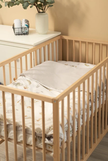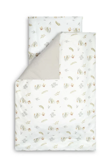 Komplet zawiera poszewki na kołderkę i poduszkę oraz prześcieradło z gumką. Uszyty jest z miłej w dotyku i trwałej bawełny 100%. Przeznaczony jest do łóżeczek 120×60 cm. Poszewki na kołdrę oraz poduszkę są zapinane na zamek. Prześcieradło posiada wszytą gumkę. Połączenia kolorystyczne łączące wzorzystą bawełnę z jednobarwnym rewersem kołdry będą idealnie pasowały do każdego dziecięcego pokoiku.