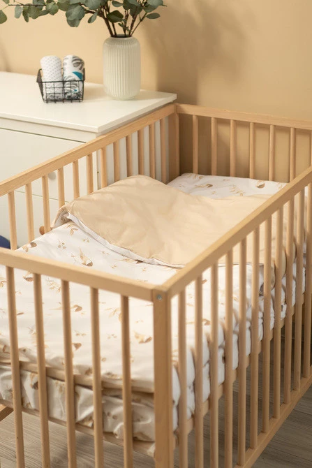 Komplet zawiera poszewki na kołderkę i poduszkę oraz prześcieradło z gumką. Uszyty jest z miłej w dotyku i trwałej bawełny 100%. Przeznaczony jest do łóżeczek 120×60 cm. Poszewki na kołdrę oraz poduszkę są zapinane na zamek. Prześcieradło posiada wszytą gumkę. Połączenia kolorystyczne łączące wzorzystą bawełnę z jednobarwnym rewersem kołdry będą idealnie pasowały do każdego dziecięcego pokoiku.