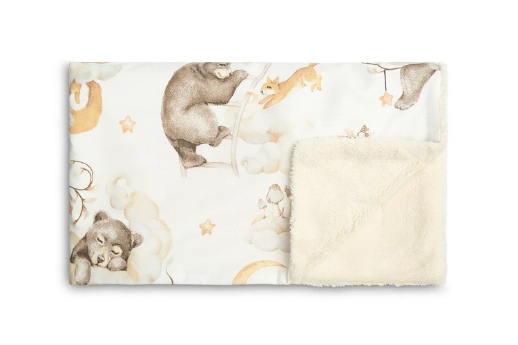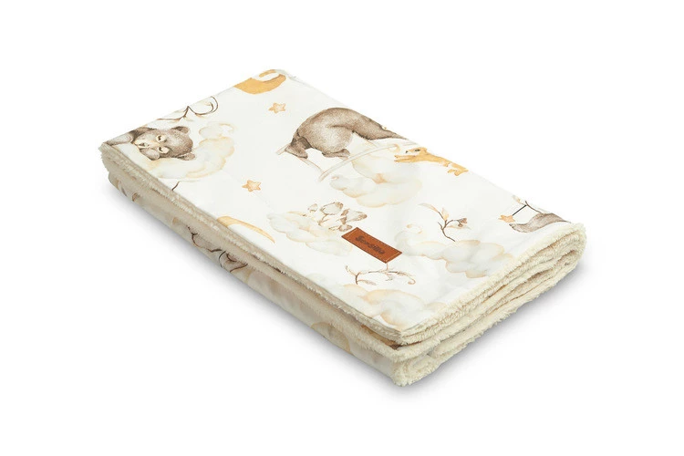 Kocyk pluszowy to bardzo dobre rozwiązanie na wczesnojesienne oraz wiosenne spacery. Wykonany został z połączenia miękkiego pluszu oraz 100% bawełny. Wewnętrzna przyjemna warstwa zapewnia ciepło w chłodniejsze dni. W zależności od potrzeb może być używany obustronnie. Dzięki swoim uniwersalnym wymiarom nadaje się do pokoiku oraz na spacery. Jest praktyczny i lekki i zajmuje mało miejsca w wózku. Nie posiada dodatkowego wypełnienia.