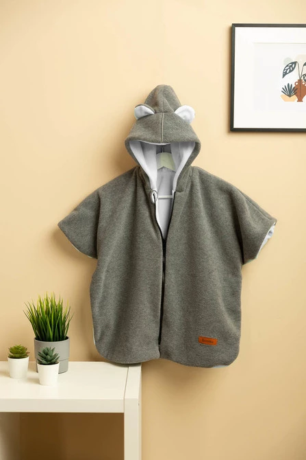 Ponczo samochodowe jest doskonałym zamiennikiem dla kurtki w aucie. Zwykła kurtka często sprawia, że pasy bezpieczeństwa nie zapewniają odpowiedniego przytrzymania dziecka w foteliku. Korzystając z poncza wygodniej zadbasz o prawidłowe zapięcie pasów. Ponadto dwukierunkowy zamek błyskawiczny z zabezpieczeniem przed podrażnieniem oraz magnesy pod pachami sprawiają, że błyskawicznie założysz i ściągniesz ponczo. Ciepło zapewniają dwie warstwy grubego i miłego w dotyku polaru. Dodatkowo w kapturku znajduje się estetycznie wszyta taśma odblaskowa.
