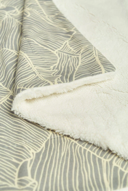 Kocyk Eco z pluszowym wnętrzem to idealne rozwiązanie na nieco chłodniejsze dni. Wykonany został z połączenia miękkiego pluszu z 100% bawełną o subtelnym roślinnym wzorze. Dzięki warstwie pluszu, kocyk jest grubszy i cieplejszy od zwykłych kocyków. Nie posiada dodatkowego wypełnienia przez co jest praktyczny i zajmuje mało miejsca w wózku. Uniwersalne wymiary sprawiają, że nadaje się do pokoiku oraz na spacery.
