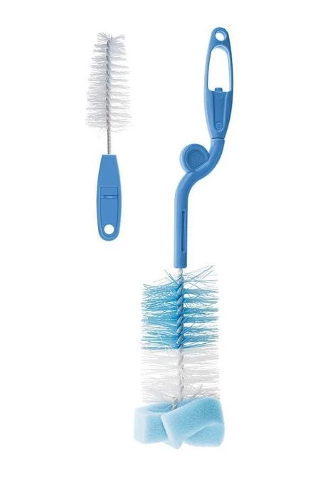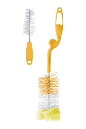 Zestaw składa się z dwóch szczotek, większej szczotki do mycia butelek oraz mniejszej, do mycia smoczków.