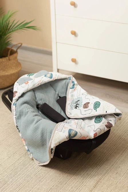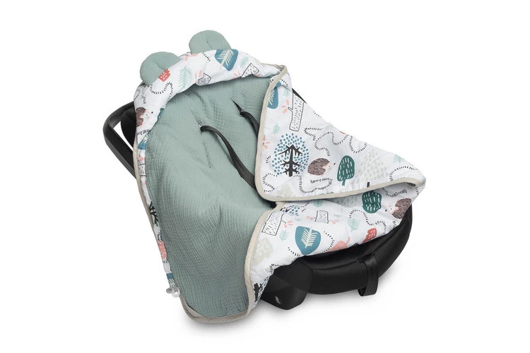 Sensillo Otulacz Muślinowy Do Fotelika Jeże Szmaragdowy