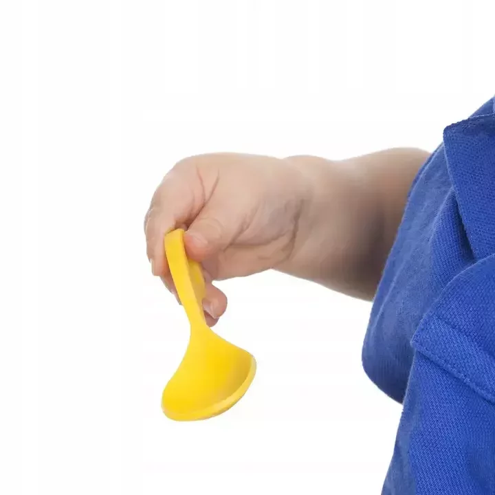 6 różnych uchwytów, które dziecko może wykorzystać do ćwiczenia doskonałych umiejętności motorycznych. Pięć palców, precyzja, kciuk i chwyt poprzeczny są znacznie bardziej użytecznym chwytem niż „chwyt cały”, do którego zaprasza wiele łyżek dziecięcych. Dziecko ćwiczy palce zamiast ramienia i umożliwia intuicyjne przejście od jedzenia rękami. Otwór w łyżce zapewnia kontakt między kciukiem a palcem wskazującym w celu zwiększenia stabilności, a jeśli dziecko tego chce, może przytrzymać kciuk lub palec wskazujący, aby zapewnić pewny chwyt.
