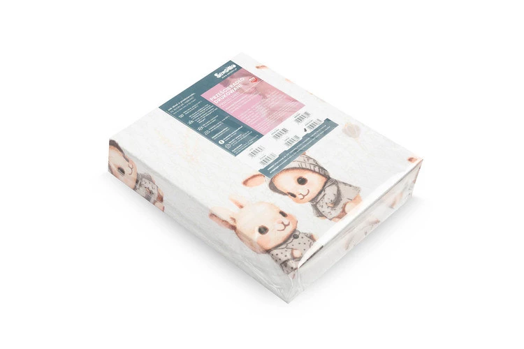 Prześcieradło drukowane wykonane jest z najwyższej jakości miłej w dotyku bawełny. Zapewni maluszkowi komfort snu, a wszyta na całej długości gumka pozwoli na łatwe powlekanie i idealne dopasowanie do materaca 120x60cm. Odpowiedni zapas materiału zapobiega jego zsuwaniu się i spadaniu.