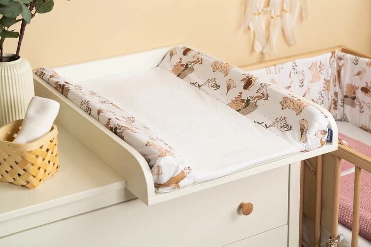 Prześcieradło na przewijak idealnie wchłania wodę po kąpieli dziecka. Wykonane z miękkiej frotte i nadrukowanej bawełny. Prześcieradło posiada gumkę, dzięki czemu dopasowuje się do przewijaka 50x70 cm i nie zsuwa się.