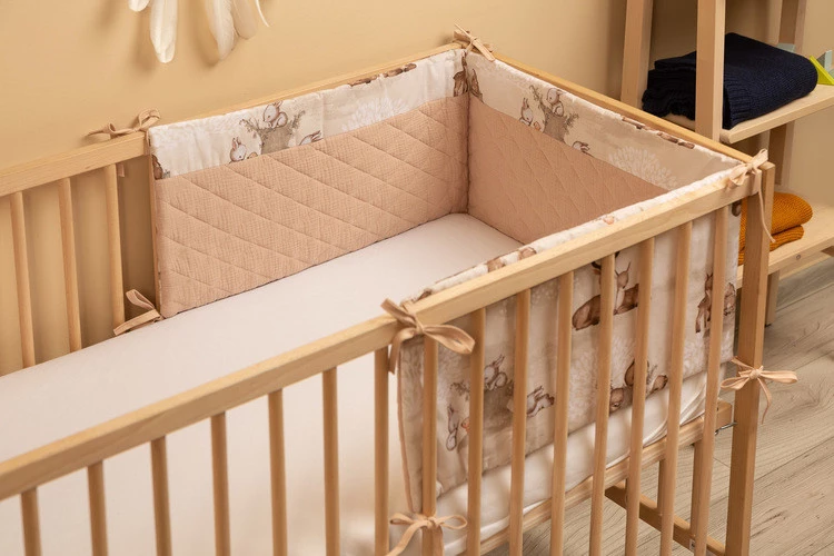 Ochraniacz do łóżeczka pasuje do każdego standardowego łóżeczka dziecięcego. Ochraniacz wykonany jest z miękkiej bawełny z nadrukiem i przyjemnego w dotyku muślinu. Poliestrowe wypełnienie ochroni dziecko przed urazami podczas poruszania się po łóżeczku. Utrzymanie ochraniacza we właściwej pozycji zapewniają tasiemki służące do przywiązania go do szczebelków łóżeczka. Zaprojektowany został do łóżeczka o wymiarach 120x60 cm. Ochraniacz będzie doskonałym dodatkiem do wyprawki dla niemowlaka