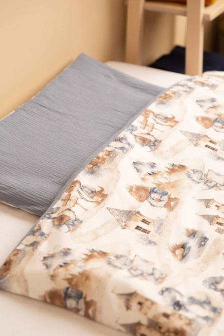 Pościel uszyta jest z miłego w dotyku muślinu i bawełny 100%. Komplet zawiera poszewkę na kołderkę i poduszkę. Całość będzie stanowić uroczy akcent w pokoiku dziecka. Poszewka na poduszkę jest zamykana na zakładkę i pasuje na wkłady o wymiarach 40×60 cm. Poszewka na kołdrę posiada zamknięcie na suwak i pasuje na wkłady o wymiarach 100×135 cm.