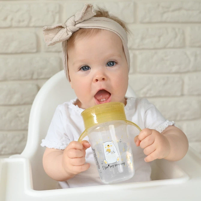 Kubek 360 Stopni marki „akuku” sprawdzi się zarówno w domu, jak i w podróży czy na spacerze. Wykonany z bezpiecznych surowców, lekki i wytrzymały. Idealnie nadaje się do nauki picia. Łatwy w utrzymaniu czystości. Transparentny kolor umożliwia łatwe kontrolowanie zawartości. Specjalny ergonomiczny kształt zapewnia dużą wygodę w użytkowaniu. Kubek wyposażony jest w wygodne, szerokie uchwyty, które ułatwiają trzymanie go w malutkich rączkach.