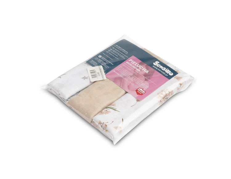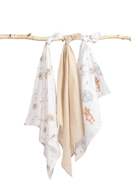 Pieluszki są konfekcjonowane w zestawy po 3 szt. Wzory w każdym komplecie są stałe.