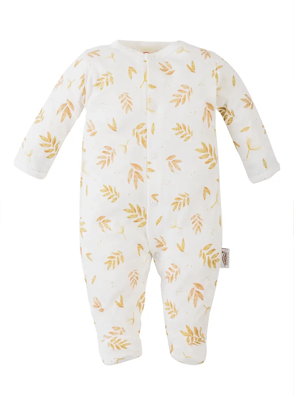 Jeżeli chcesz zapewnić bezpieczeństwo dziecku a sobie wygodę w trakcie zmiany pieluszki wybierz ubranka niemowlęce polskiej produkcji z kolekcji Li&Lu. Dziecięcy pajac rozpinany na bezniklowe zatrzaski po całej długości ułatwi cały proces nawet świeżo upieczonym rodzicom. Bawełniany materiał i antyalergiczne bezniklowe zatrzaski to duet który nie podrażnia delikatnej skóry maluszka . Ten stylowy pajacyk w złote liście to must have które musi się znaleźć w szafie małego odkrywcy.