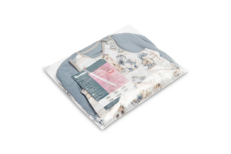 Śpiworek do spania będzie służył dzieciom już od pierwszych dni życia (0-9 miesięcy) zapewniając im ciepło i bezpieczeństwo. Uszyty jest z miękkiej bawełny wypełnionej otuliną. Wnętrze i tył śpiworka są wykonane z bawełny muślinowej. Produkt nie zawiera twardych elementów, które mogłyby podrażnić skórę dziecka. Wyposażony jest w dwustronny zamek błyskawiczny, poprowadzony wokół śpiworka, pozwalający na zmianę pieluchy bez wyciągania dziecka ze śpiworka.