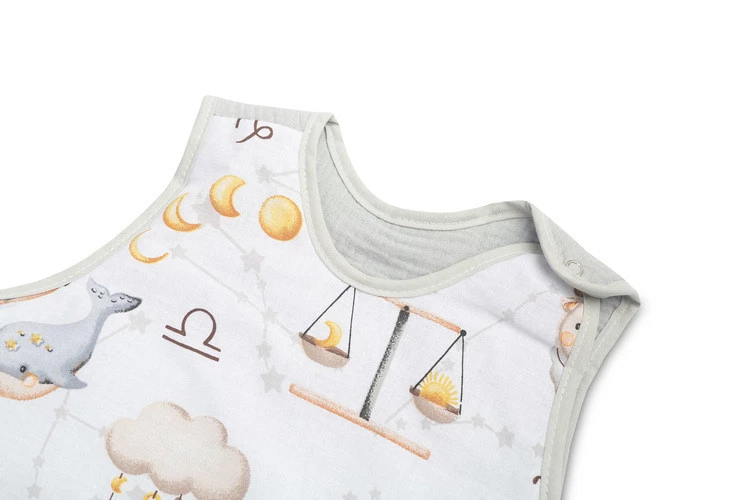 Śpiworek do spania w rozmiarze M będzie służył nieco starszym dzieciom (9-18 miesięcy) zapewniając im ciepło i bezpieczeństwo. Uszyty jest z miękkiej bawełny wypełnionej otuliną. Wnętrze i tył śpiworka są wykonane z bawełny muślinowej. Produkt nie zawiera twardych elementów, które mogłyby podrażnić skórę dziecka. Wyposażony jest w dwustronny zamek błyskawiczny, poprowadzony wokół śpiworka, pozwalający na zmianę pieluchy bez wyciągania dziecka ze śpiworka.