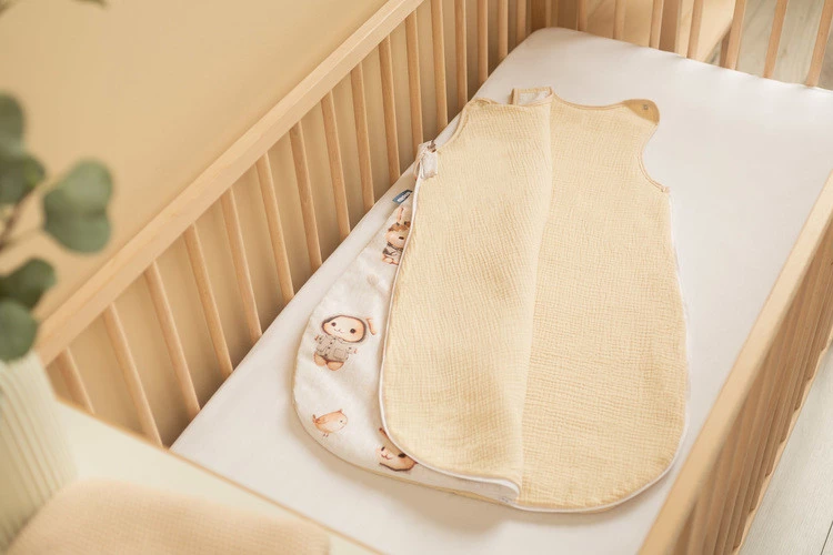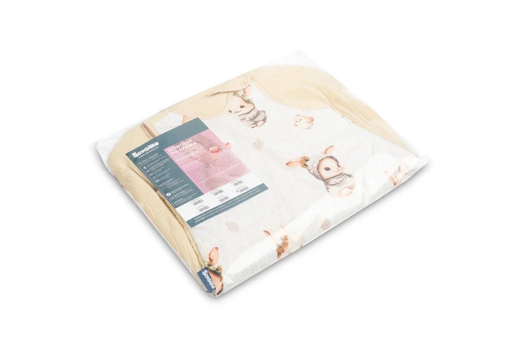 Śpiworek do spania w rozmiarze M będzie służył nieco starszym dzieciom (9-18 miesięcy) zapewniając im ciepło i bezpieczeństwo. Uszyty jest z miękkiej bawełny wypełnionej otuliną. Wnętrze i tył śpiworka są wykonane z bawełny muślinowej. Produkt nie zawiera twardych elementów, które mogłyby podrażnić skórę dziecka. Wyposażony jest w dwustronny zamek błyskawiczny, poprowadzony wokół śpiworka, pozwalający na zmianę pieluchy bez wyciągania dziecka ze śpiworka.