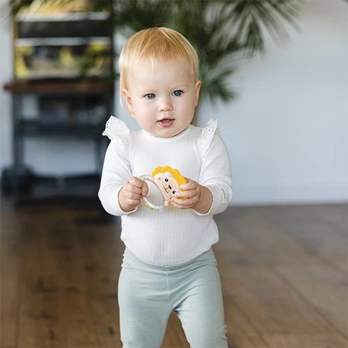 Kolorowa grzechotka LION to idealna pierwsza zabawka dla Twojego malucha. Wykonana została w całości z bezpiecznych i przyjemnych w dotyku materiałów. Miękka grzywka grzechotki wspomaga etap ząbkowania malucha, a kolorowe pierścienie dodają elementu dźwiękowego. Grzechotka LION to doskonały sposób na rozwijanie koordynacji i zdolności manualnych w zabawny i bezpieczny sposób.