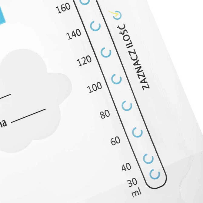 - Umyj dokładnie ręce, a następnie rozłóż woreczek na czystej, stabilnej powierzchni. Zaznacz datę i godzinę odciągnięcia mleka na przeznaczonym miejscu, aby ułatwić kontrolę świeżości pokarmu.