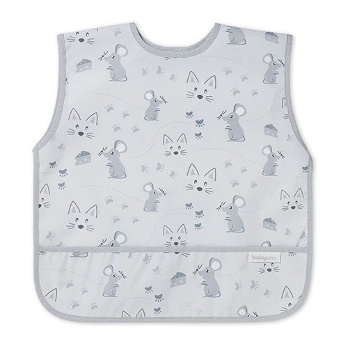 Fartuszek zabezpieczy ubranie malucha przed plamami. Sprawdzi się podczas codziennych posiłków, nauki jedzenia, a także zabawy i zajęć plastycznych.