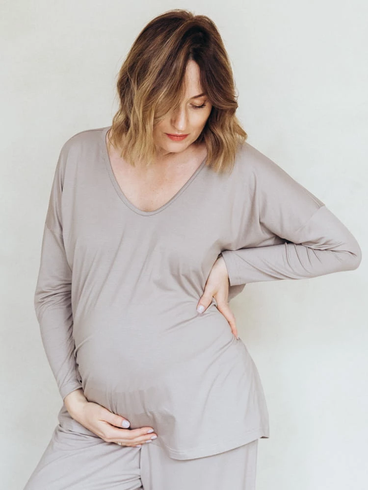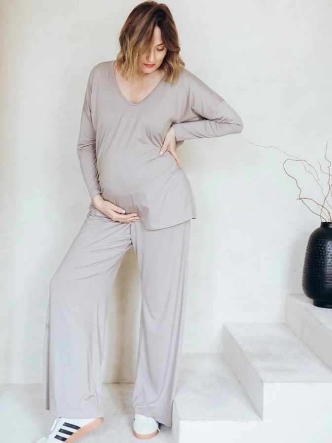 Stwórz komplet — połącz bluzkę MOCHA z naszymi długimi spodniami MOCHA i ciesz się maksymalnym komfortem w ciąży i podczas karmienia.