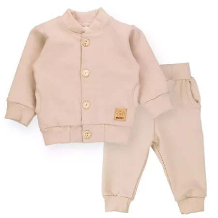 Wygodna bluza typu bomberka z prostą stójką, zapinana na drewniane guziczki oraz komfortowe spodnie niemowlęce w kolorze beżu to Antoś- stylowy komplet ubranek dla każdego chłopca. Gotowe komplety dresowe pokochały nie tylko dzieci ale również ich rodzice. Przy wyborze odzieży dla niemowląt zawsze kierujcie się jakością materiału i stawiajcie na ubranka uszyte z bawełny żeby zadbać o bezpieczeństwo wrażliwej skóry maluszka.