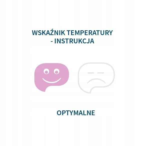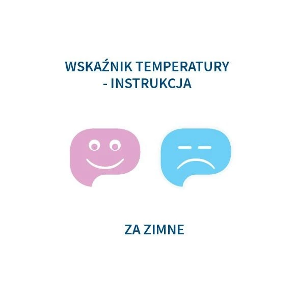 - Na woreczku znajduje się wskaźnik temperatury w postaci dwóch chmurek – czerwonej z uśmiechem oraz niebieskiej ze smutną miną.